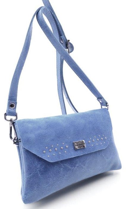 BOLSITO BANDOLERA PIEL CREMALLERA Y SOLAPA TACHAS 20X13 AZ –